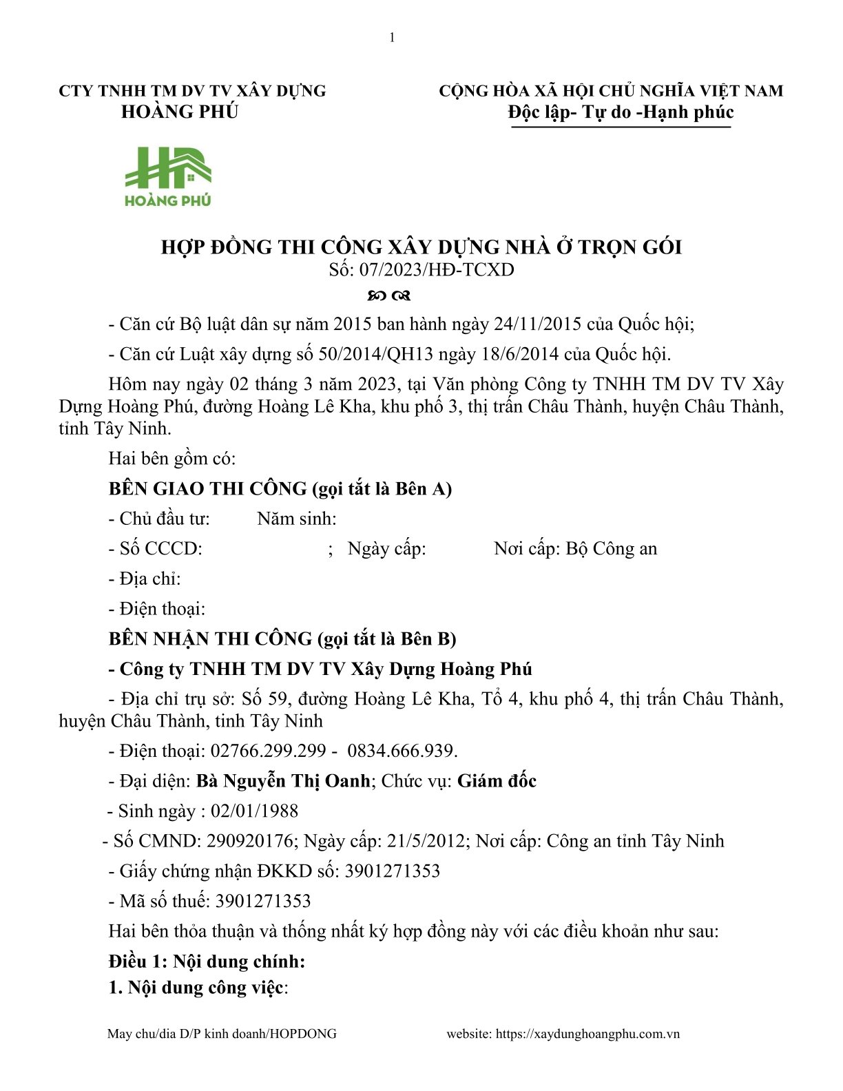 Dưới đây là bản hợp đồng mẫu của công ty Hoàng Phú: https://drive.google.com/file/d/1rFDhvOu9vReQNHKYjNnSO5Lf69MT_cRx/view?usp=sharing