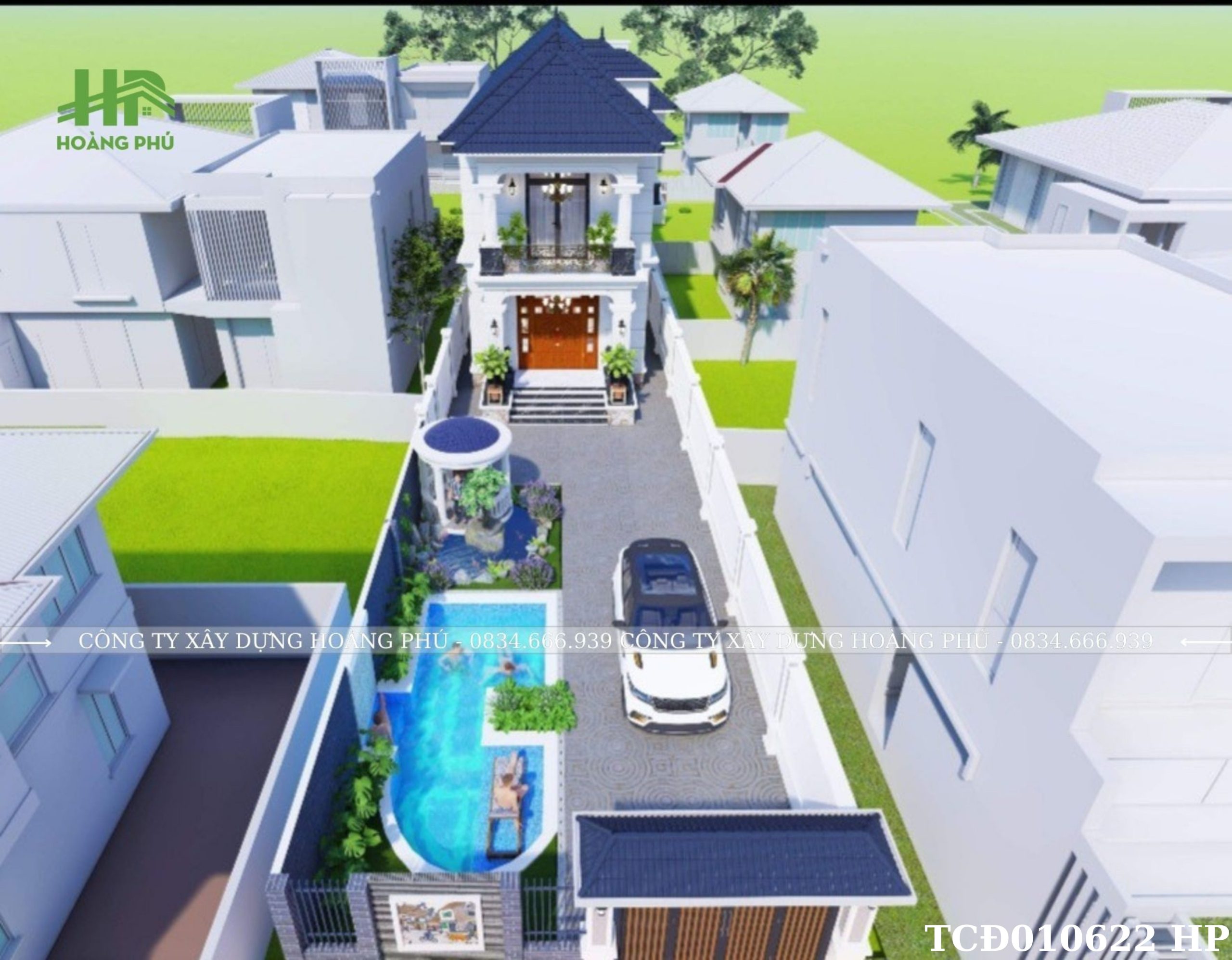 Mẫu nhà 1 trệt 1 lầu này được thiết kế với sự kết hợp tinh tế giữa phong cách tân cổ điển và đặc trưng của kiến trúc mái Nhật. Với diện tích xây dụng là 138m2 nền trệt, căn biệt thự này đã được tối ưu hóa một trệt và một lầu với các công năng tạo nên được không gian sống thoải mái và tiện nghi cho gia đình.