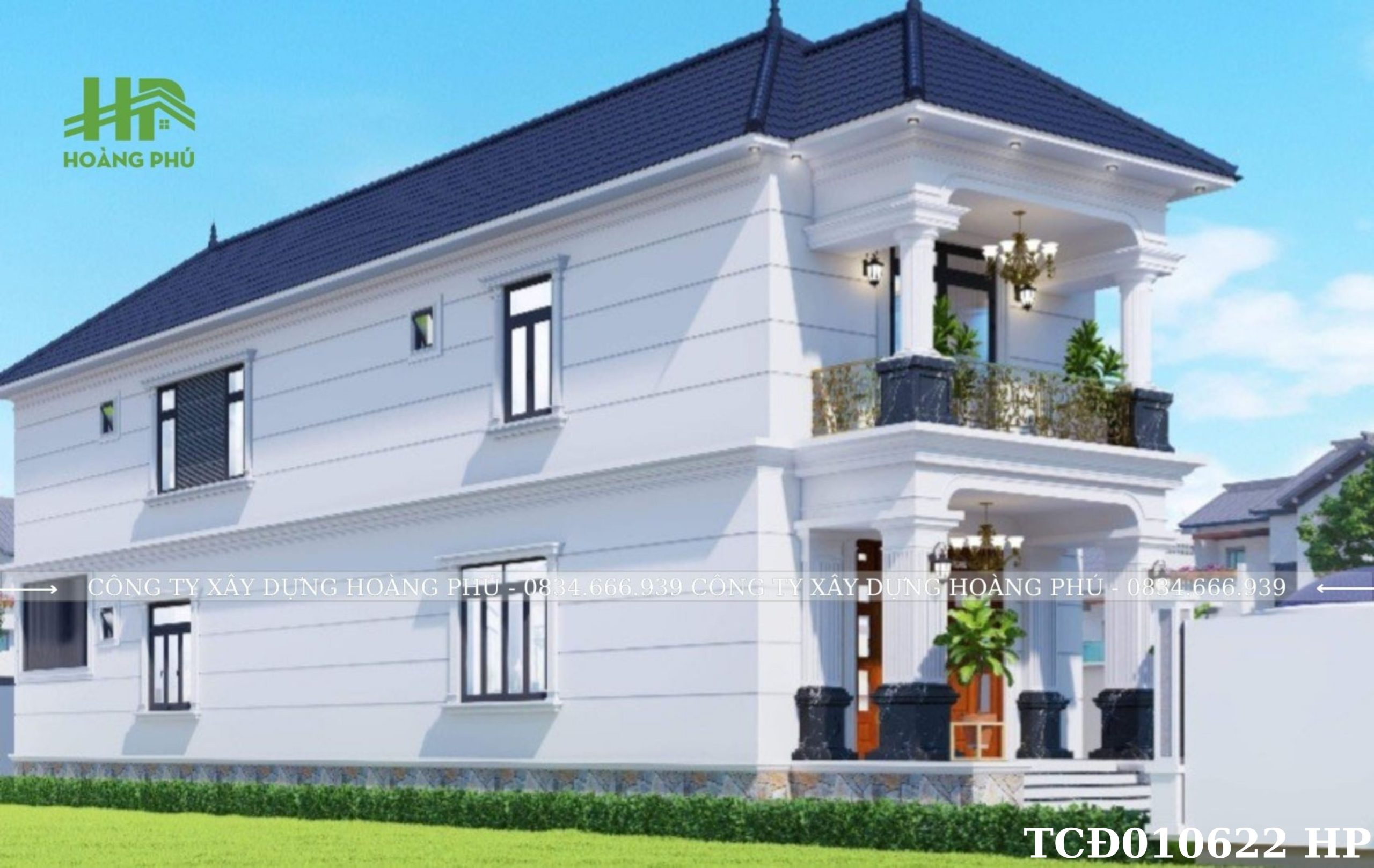 Nhìn vào ngoại thất của căn biệt thự này. Nó được kết hợp hài hòa giữa gam màu trắng tạo nên vẻ đẹp nhẹ nhàng, thanh thoát nhưng cũng vô cùng quý phái, cũng bởi vì thế mà kiến trúc sư và khách hàng đã lựa tone trắng làm màu chủ đạo cho công trình này. Và hệ mái ngói Nhật màu xanh đậm kết hợp tone màu trắng của tường tạo cảm giác chắc chắn, vững chãi nhưng cũng không nặng nề, cũng giúp làm nổi bật lên các hình khối, đường nét trong kiến trúc tân cổ điển.