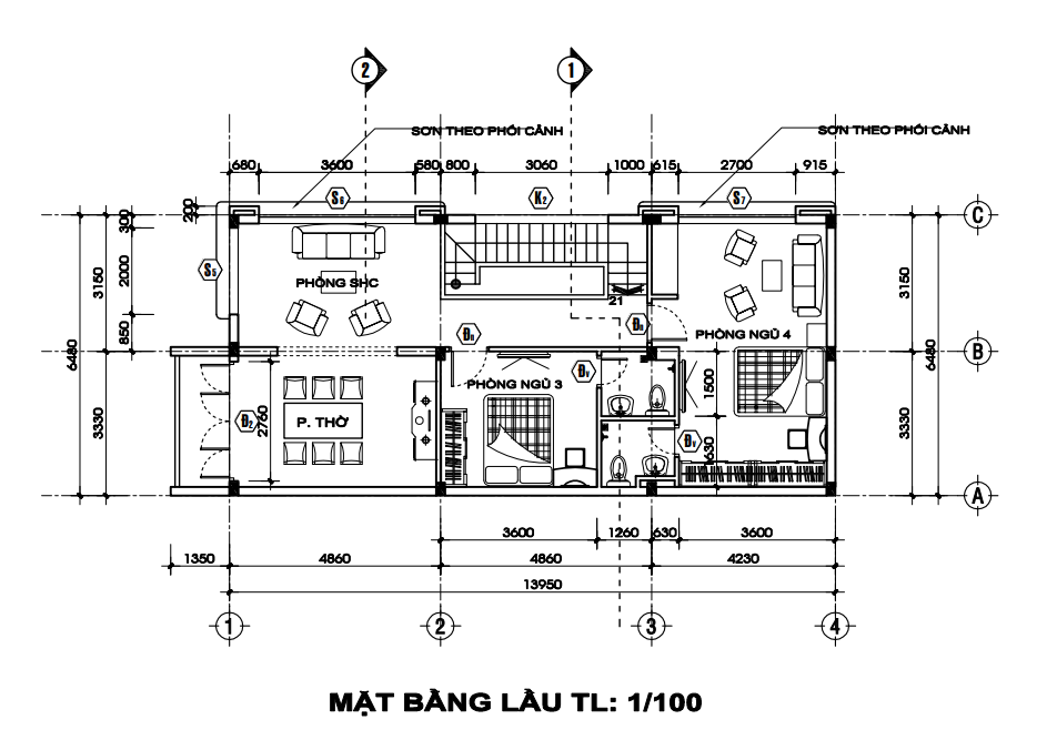 – Lầu 1: 1 phòng thờ, 1 phòng sinh hoạt chung, 2 phòng ngủ, 2 nhà vệ sinh