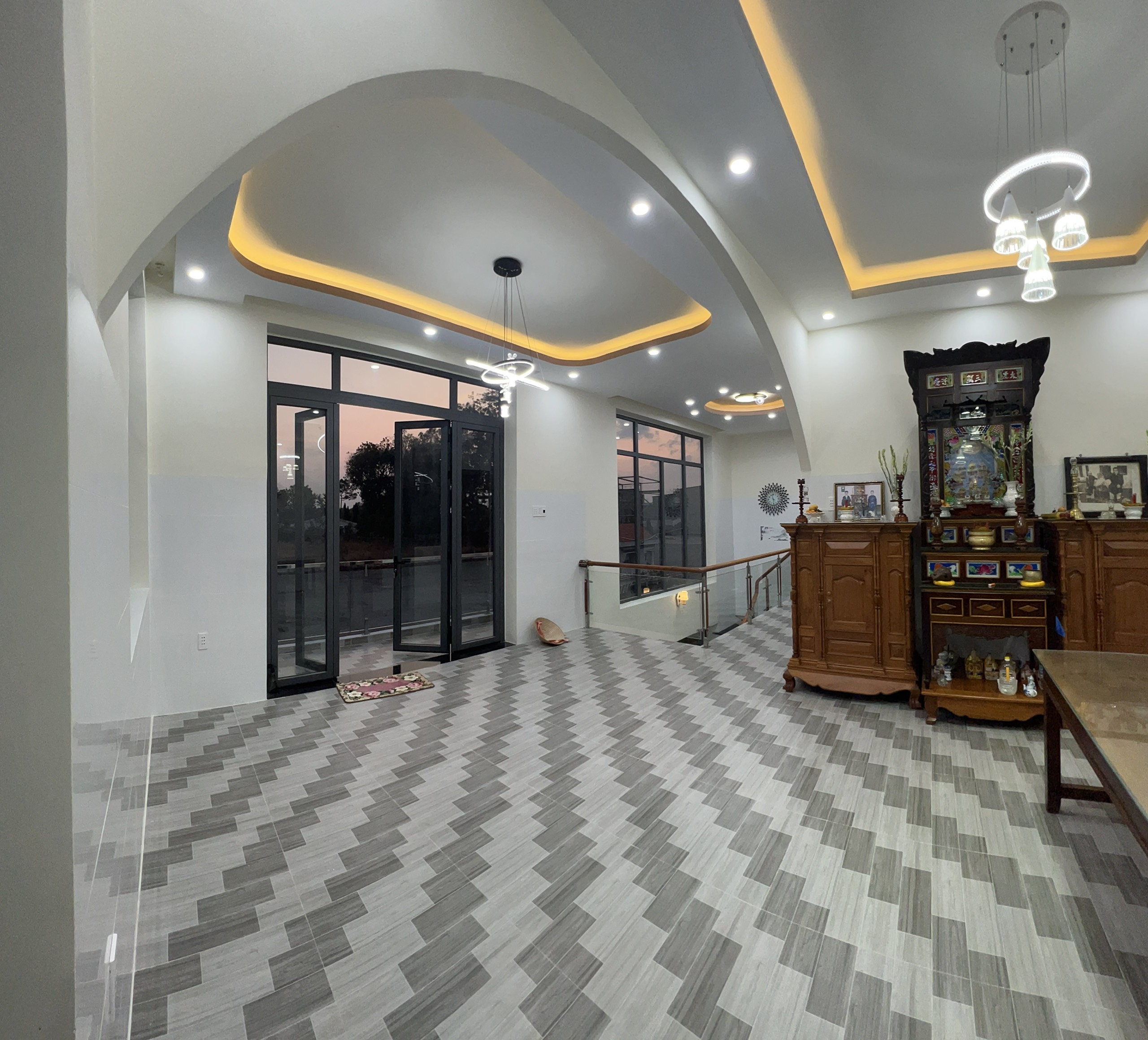 Với cấu trúc 1 trệt 1 lầu, không gian được tận dụng một cách hiệu quả. Tại tầng trệt, bạn sẽ được đón tiếp bởi phòng khách rộng rãi, thoáng đãng. Phòng bếp tiện nghi cùng 2 phòng ngủ đều có nhà vệ sinh riêng đảm bảo sự thoải mái và tiện lợi cho cả gia đình. Lên tầng lầu, phòng thờ ở vị trí đầu tiên tạo cảm giác trang nghiêm cho khu vực thờ cúng tổ tiên, kế đến là không gian sinh hoạt chung với view nhìn ra khu vườn cây bên dưới mang đến sự thư giãn và thoải mái cho các thành viên sau những ngày làm việc. Bên cạnh đó, 2 phòng ngủ thêm và 2 nhà vệ sinh riêng tiếp tục đảm bảo sự riêng tư cho mỗi thành viên trong gia đình.